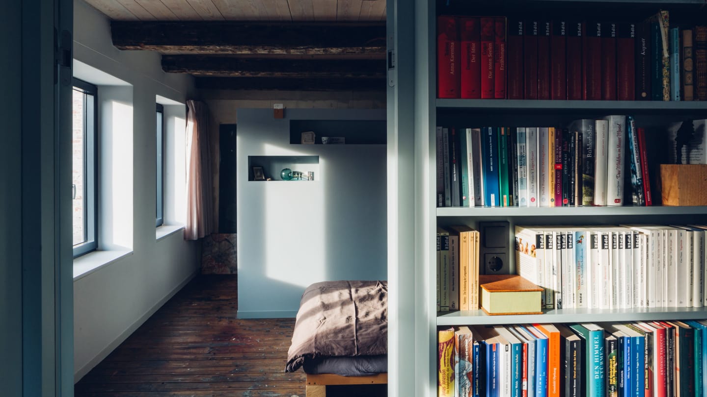 The property’s original owners, the Kahns family—painters for three generations—had occupied the building since 1942. Their doctrine was clear: “A Kahn never sells.” But over the course of three years, conversations unfolded about the 500-square-meter disused workshop, a ladder storeroom, a front building with apartments, and a typical Lübeck-style rear atelier house accessible only through a courtyard. Architecturally characteristic for the city and just the kind of challenge the architects thrive on.