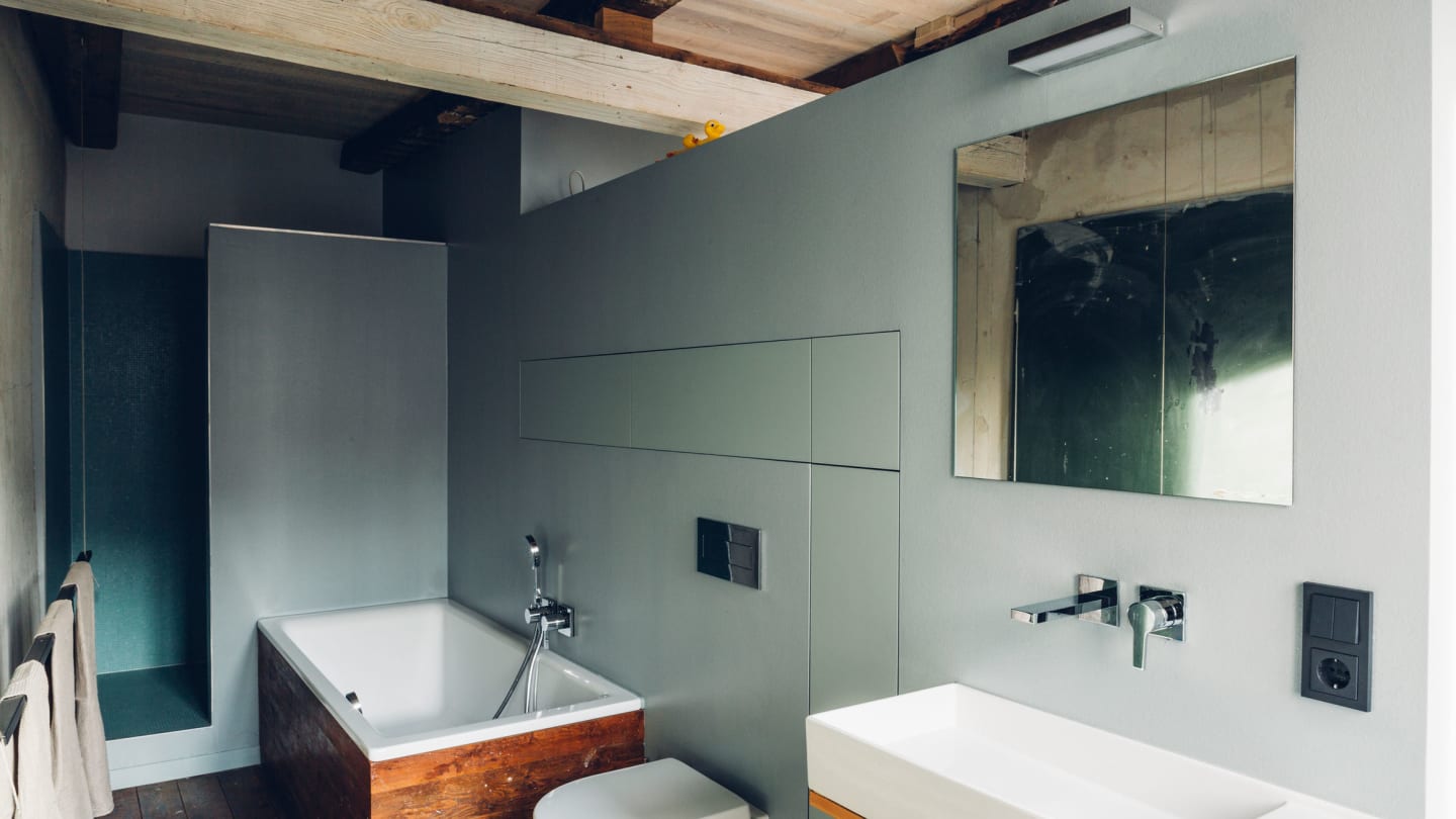 The house breathes history—through every room, niche, and beam. Between ceiling joists, they found copper seals for sailor’s buttons from the late 19th century—a clue to the space’s former use as a stamping workshop, which also explained the unusually massive beams in what is typically a light-framed rear house. Rear buildings like these are typically more delicate in scale and far less generous in their proportions.
