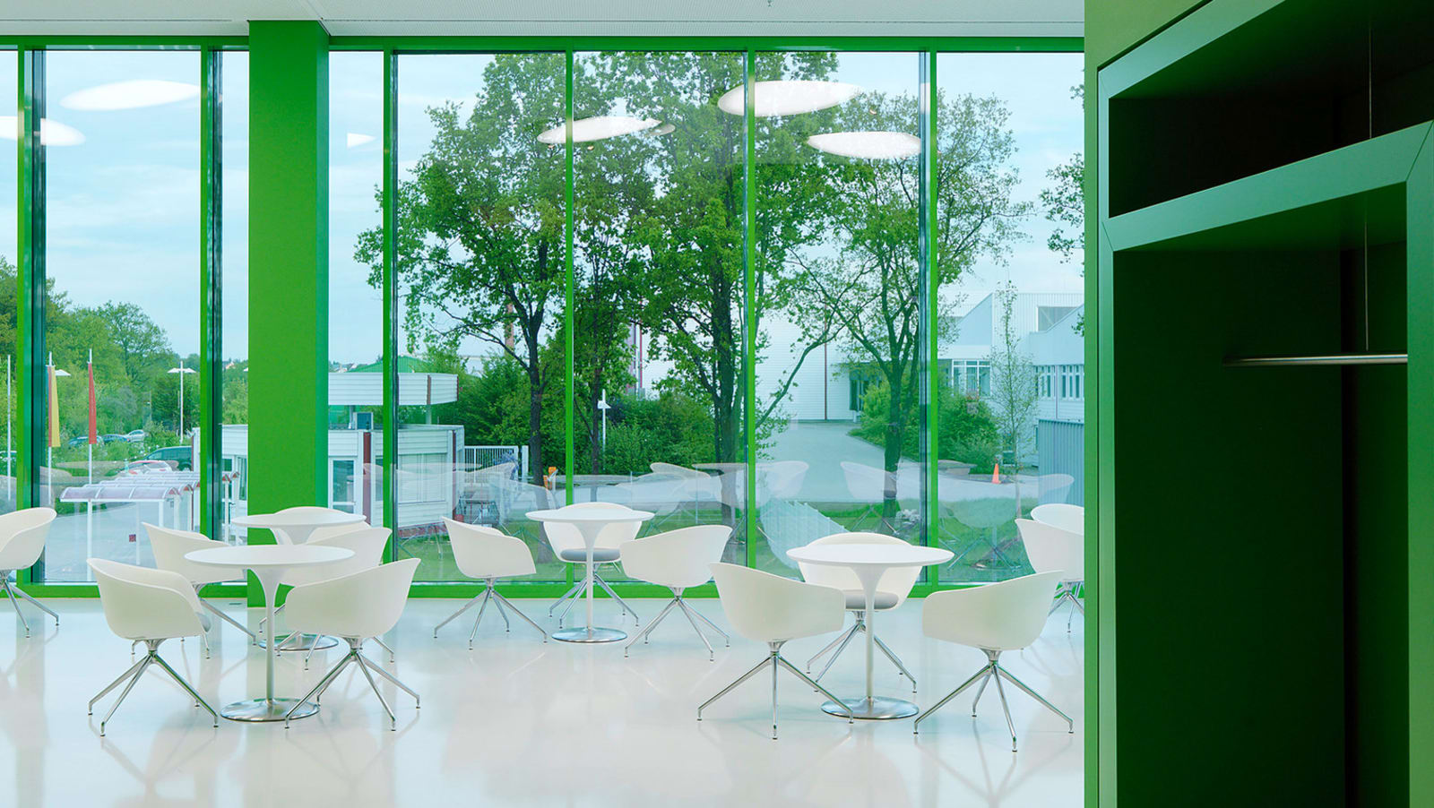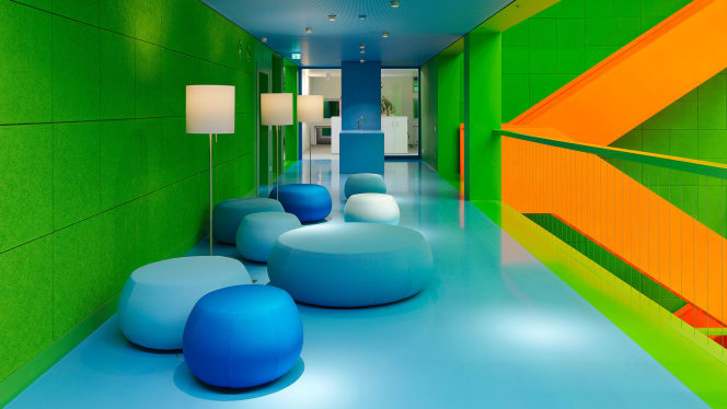 “From the beginning, we saw the bold colors of the STABILO BOSS as a central idea for the color concept. Orange stands for vertical movement, green for structure, blue for communication, and yellow for light.”