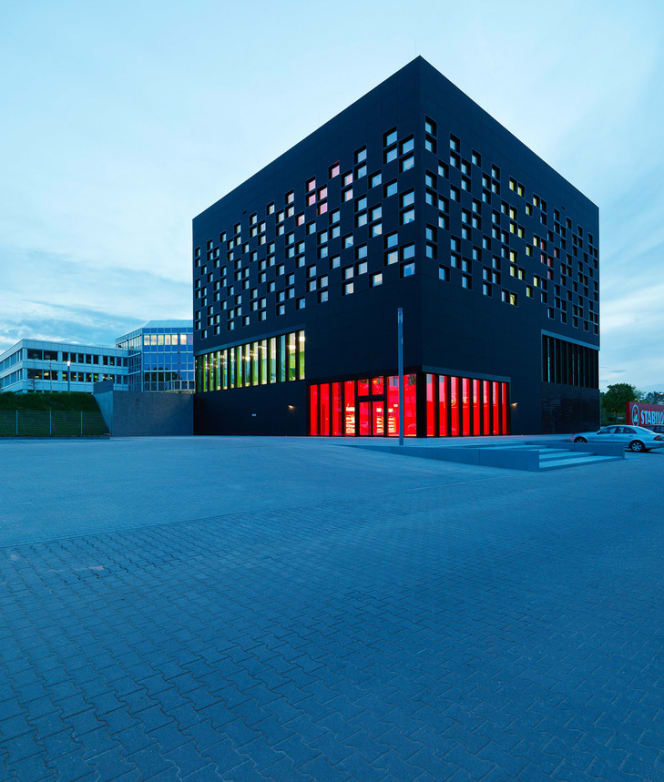 The STABILO Cube in Heroldsberg is as bold as the brand it represents. Completed in 2015 to mark the company’s 160th anniversary, the new headquarters of Schwan-STABILO was designed by Cologne-based architects mvm+starke. While its dark exterior strikes a discreet tone, the interior bursts into color—drawing inspiration from the iconic hues of the company’s highlighters, pens, and cosmetics lines.