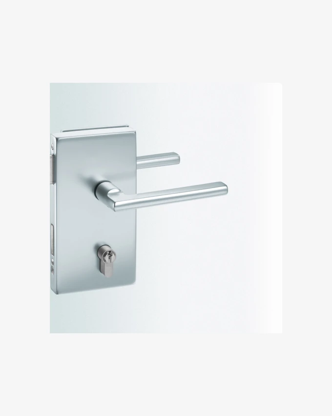 Rectangular lockset plate with cover plates with heavy-duty glass door lock (DIN 18251, analogous to Class 4) PZ cylinder CTC 72 mm