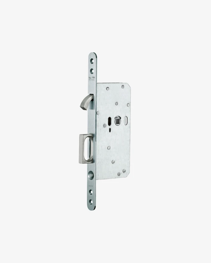 A high quality sliding pocket door privacy lock/pull/passage series compatible with an array of FSB sliding door trim. The locks are manufactured in Germany and designed to accommodate FSB trim for positive alignment with the lock case. The lock is backed by a 5 year limited warranty.
