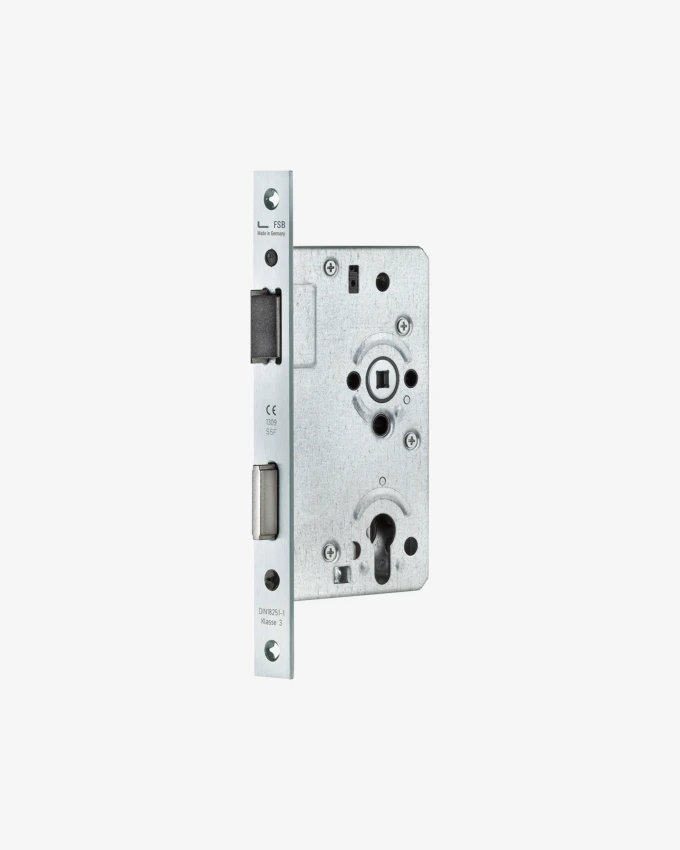 DIN 18251-1 Class 3 lock, made in Germany. Fits 1⅜" doors – a favorite for high-end residential projects seeking European styling and compact format.